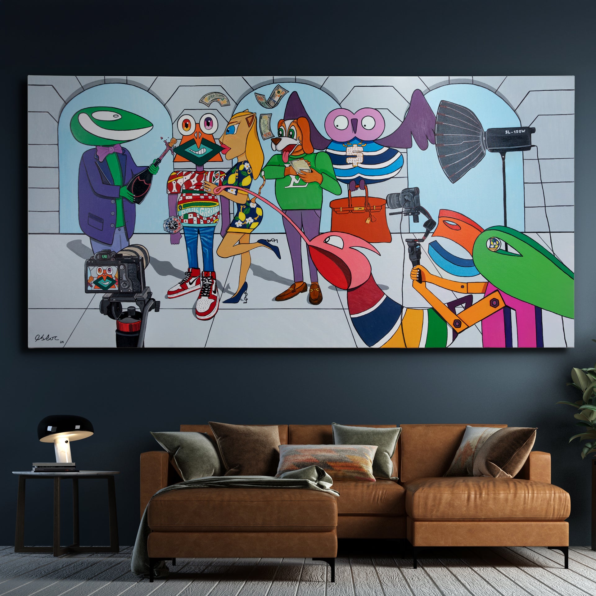 As champagne flows and cameras click, Flexer and Monica steal a kiss, igniting the scene with a hint of something more. But behind the glitz, Mr. Owl's eyes reveal a tale of caution amidst the cash cascade. In this whirlwind of glamour and finance, they sparkle, but the strains of extravagance linger in the air.